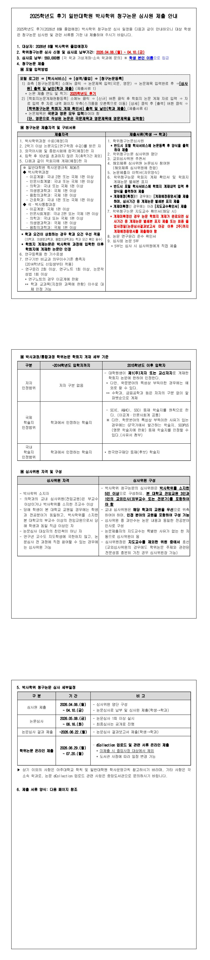 2025학년도 후기(2026년 8월 졸업예정자) 박사학위 청구논문 심사원 제출 안내