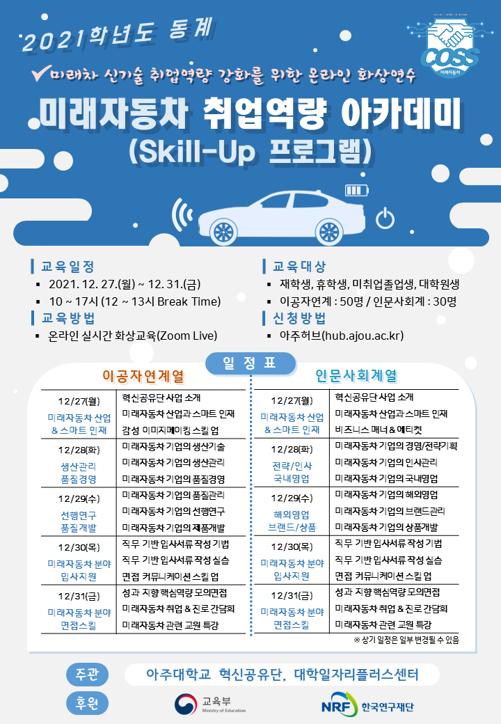 미래자동차분야 취업역량 아카데미 참가자 모집
