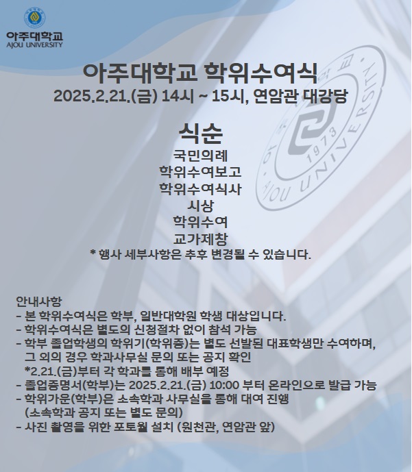 | 1135 | 학사 | 2025-02-05 | 3164 | ||