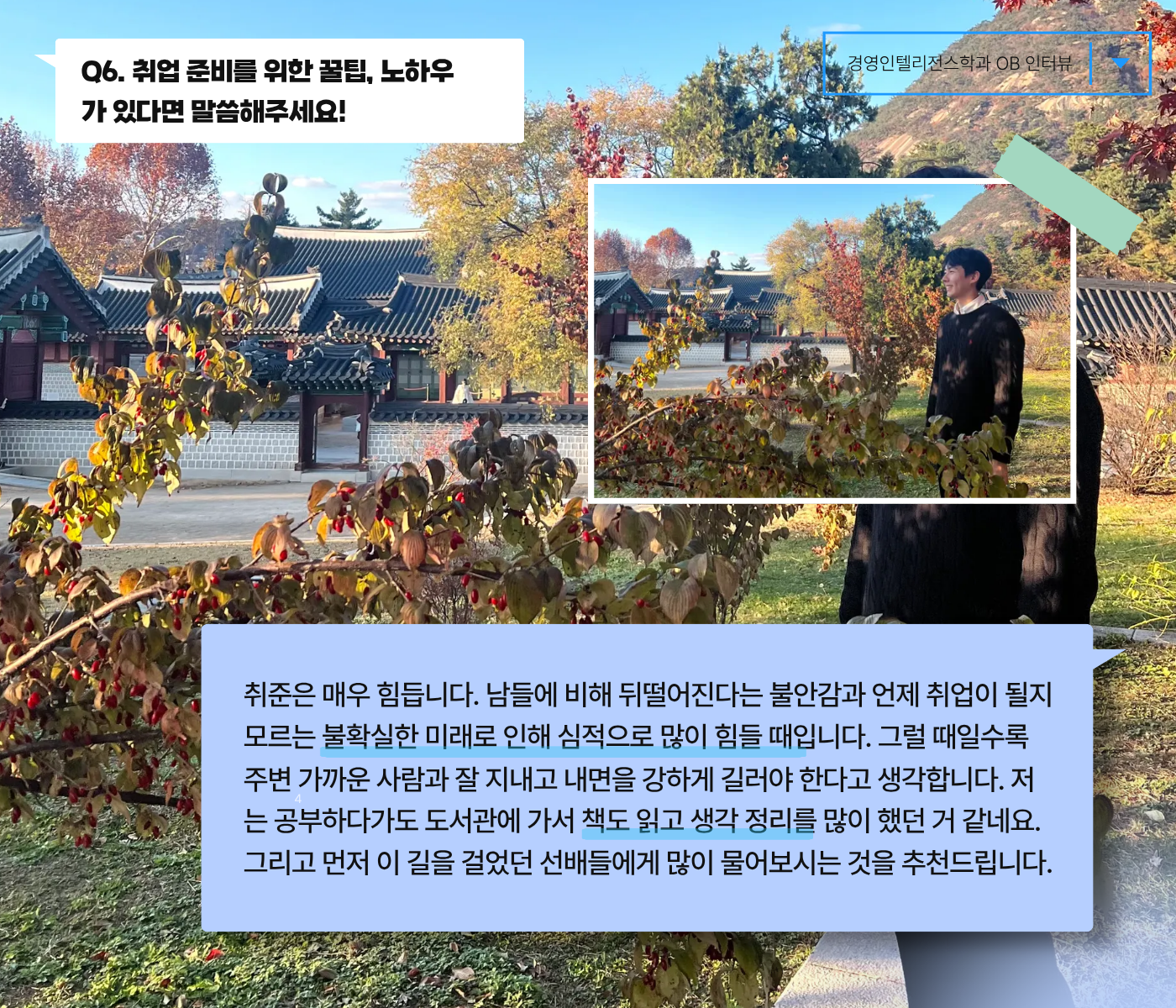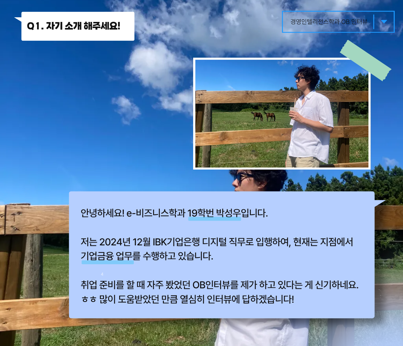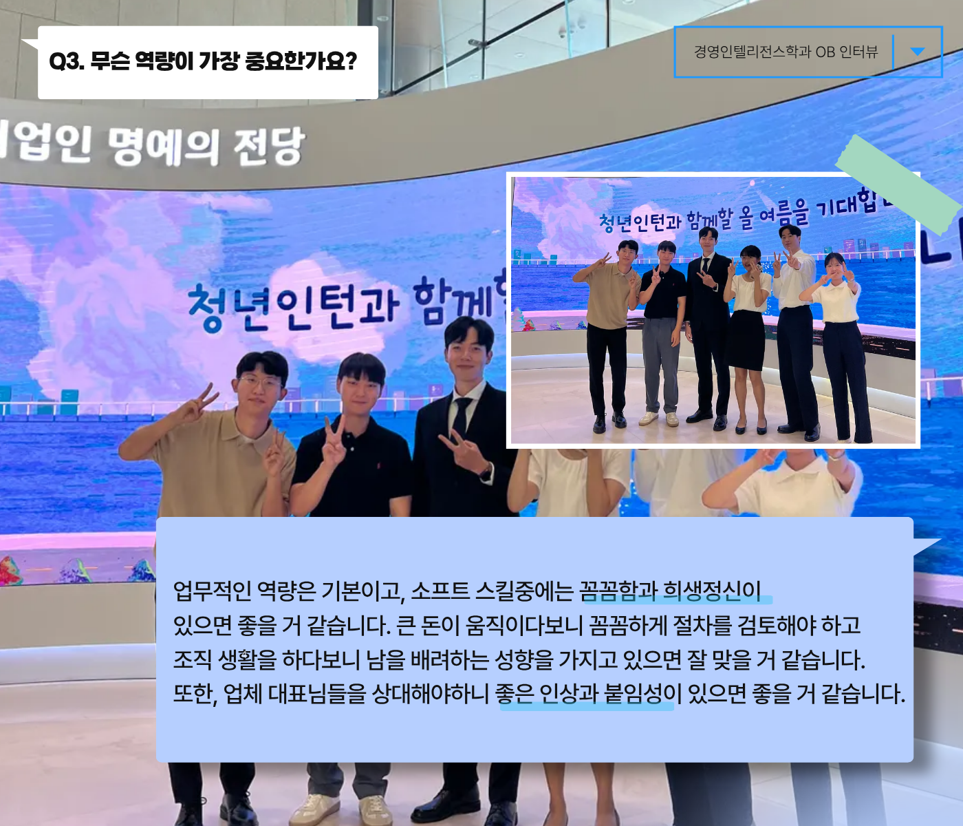 끝나자마자 여러분의 힐링 "경영인텔리전스학과의 OB 인터뷰"를 가져왔습니다~