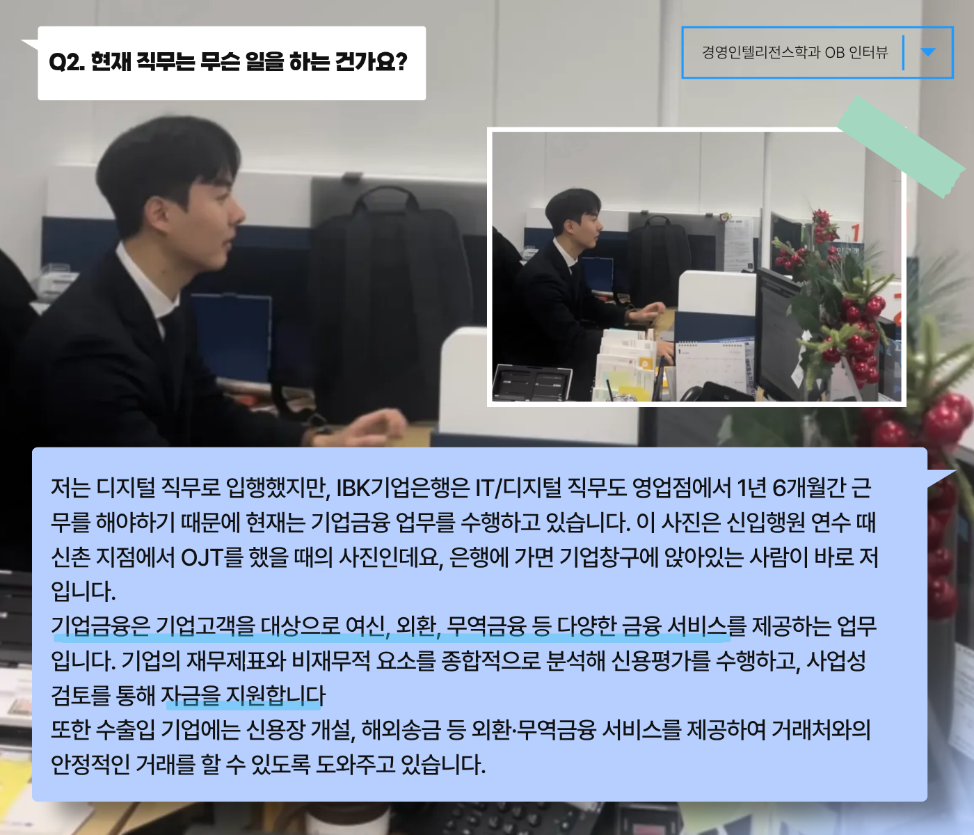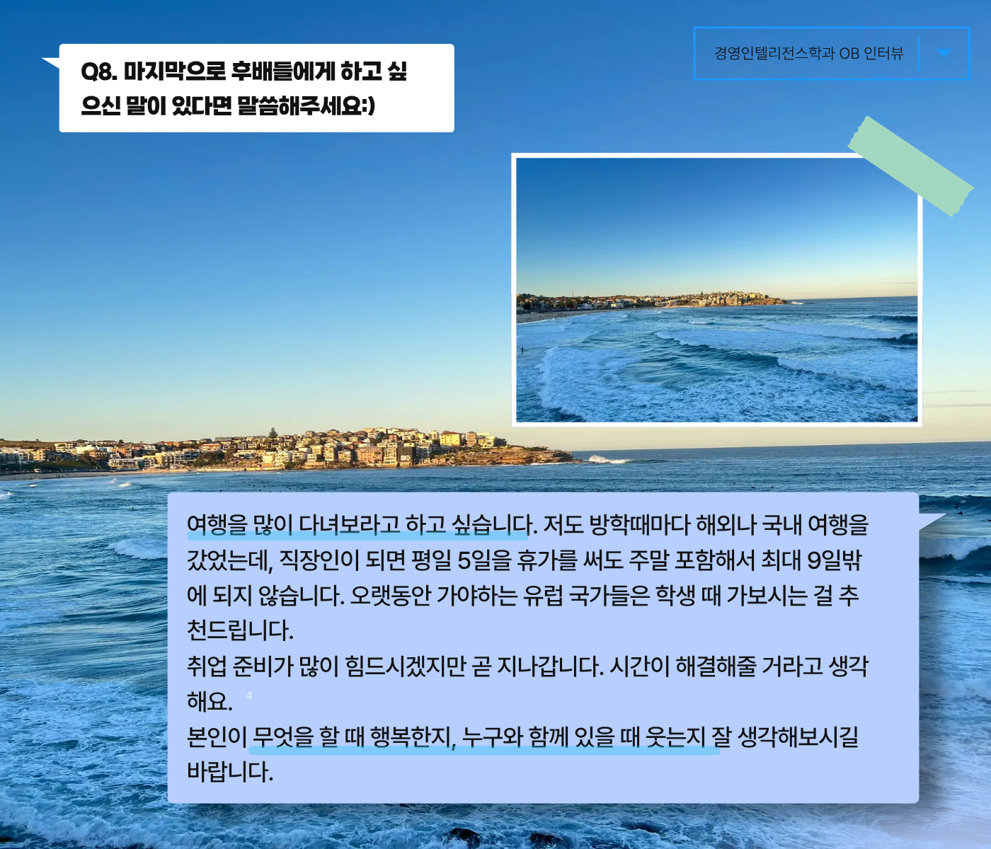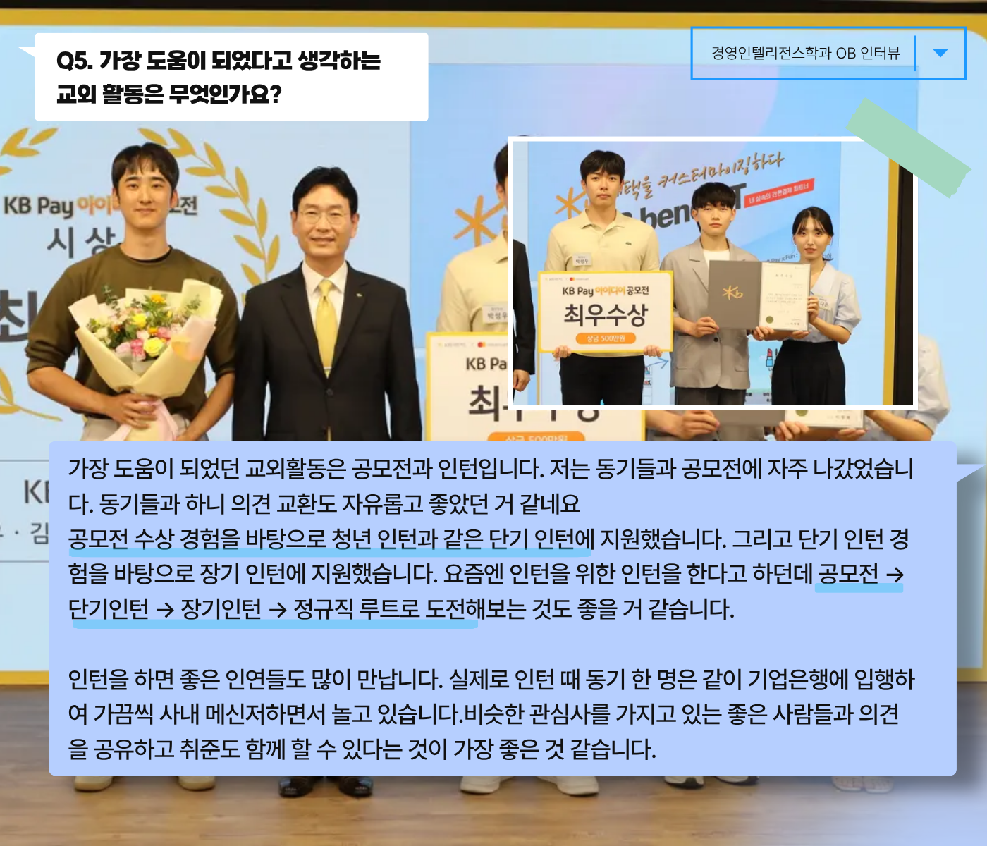 끝나자마자 여러분의 힐링 "경영인텔리전스학과의 OB 인터뷰"를 가져왔습니다~