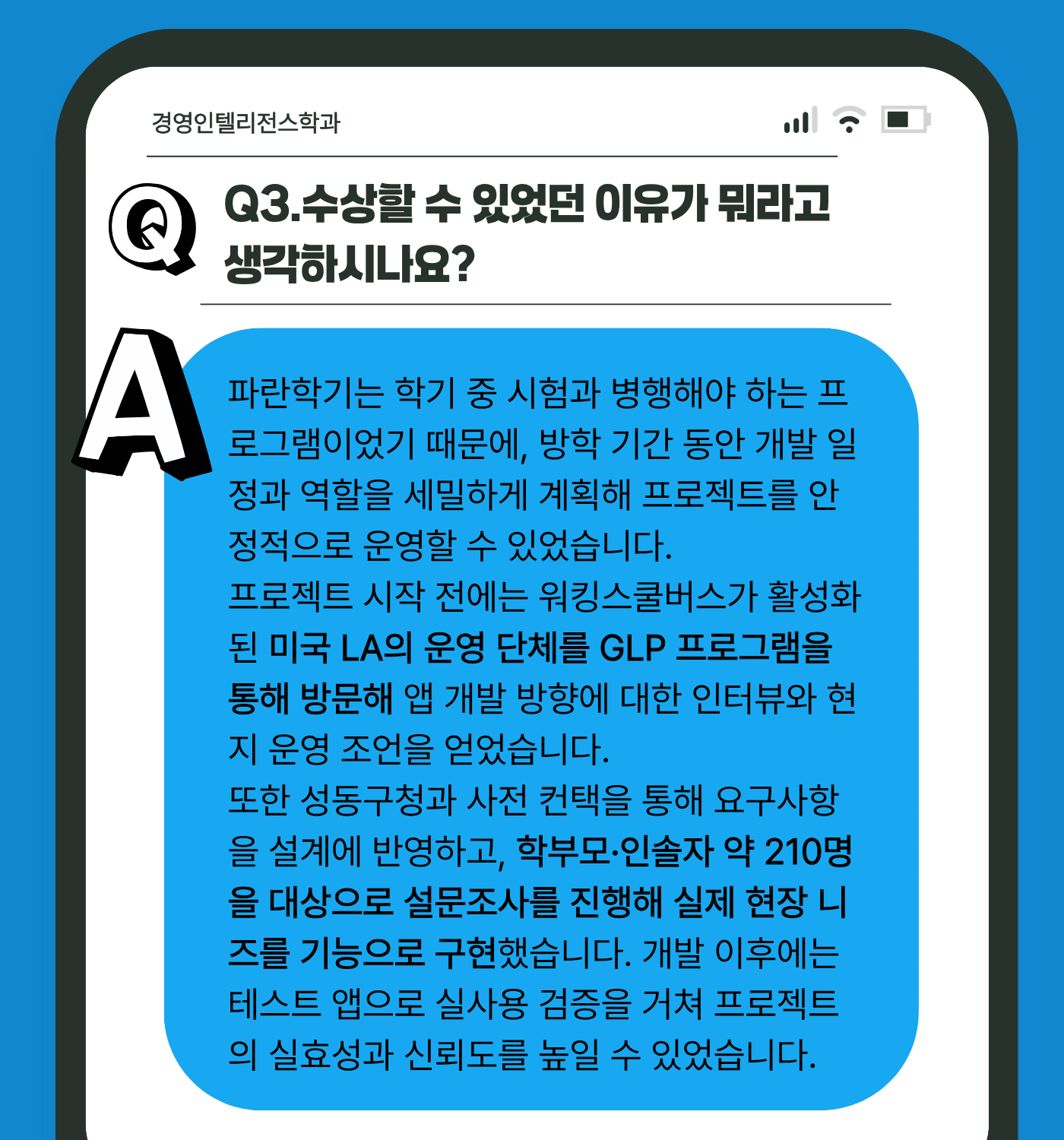 오늘은 파란학기 수상자 선배님들의 인터뷰를 갖고 왔습니다!