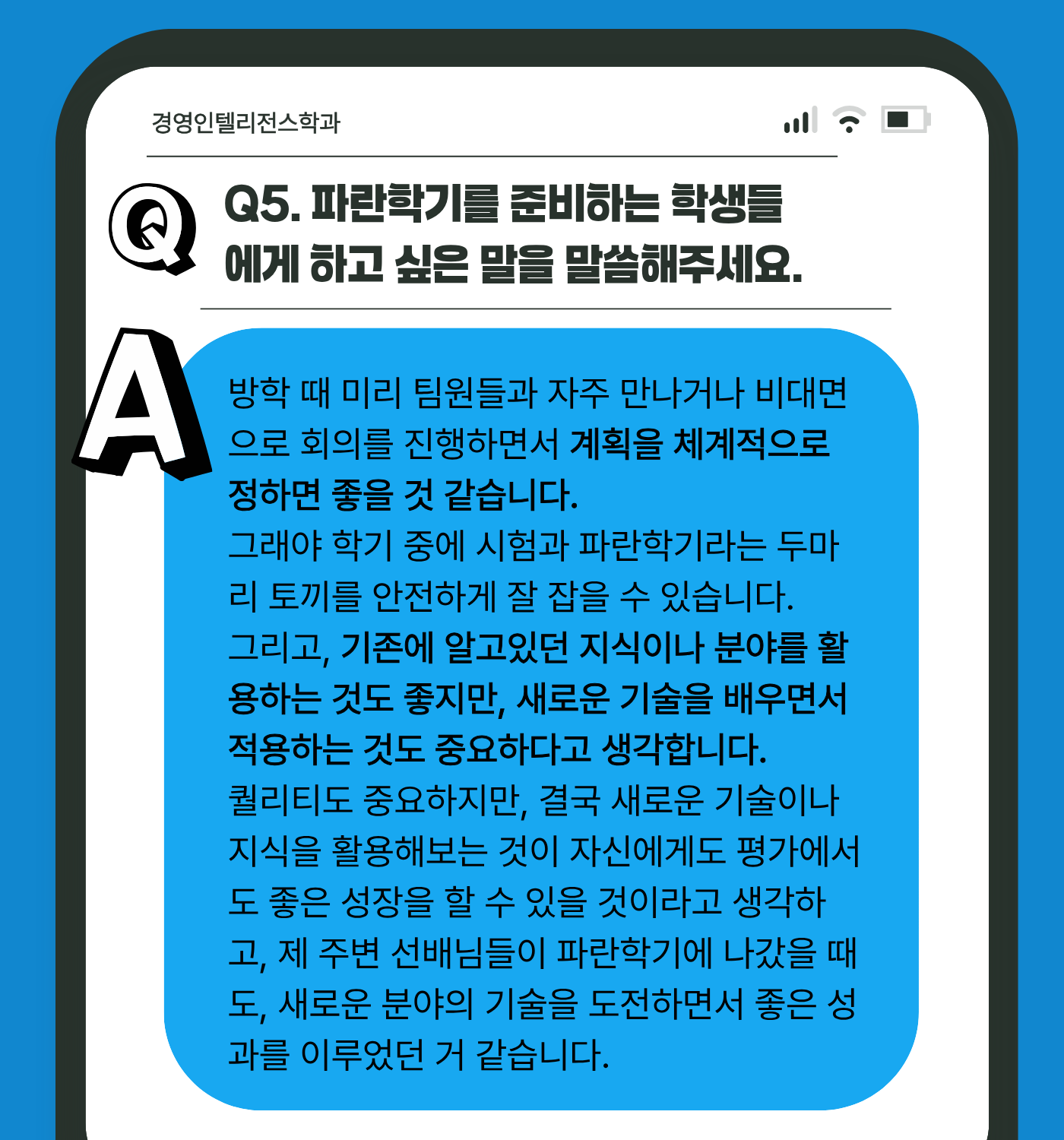 선배님들만의 파란학기 노하우와 어려웠던 점 등등을 담은 인터뷰, 함께 보러 가실까요?
