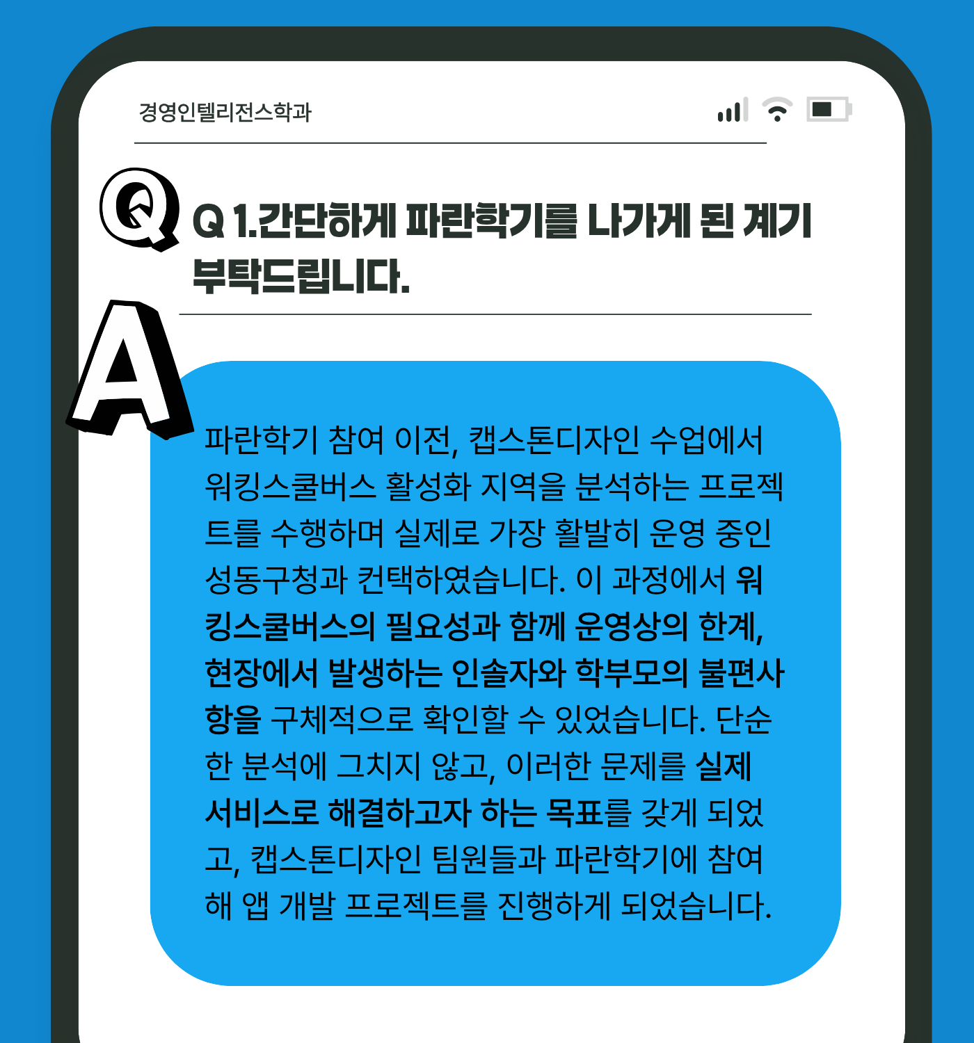 [파란학기 인터뷰] 워킹스쿨버스 운영 수상팀