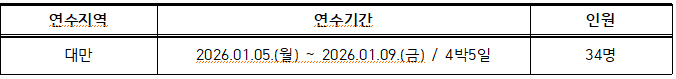 [공지] ★중요★ [공과대학] 2025-2학기 자기개발 해외연수(대만) 참가자 추가 모집 (모집기간연장)