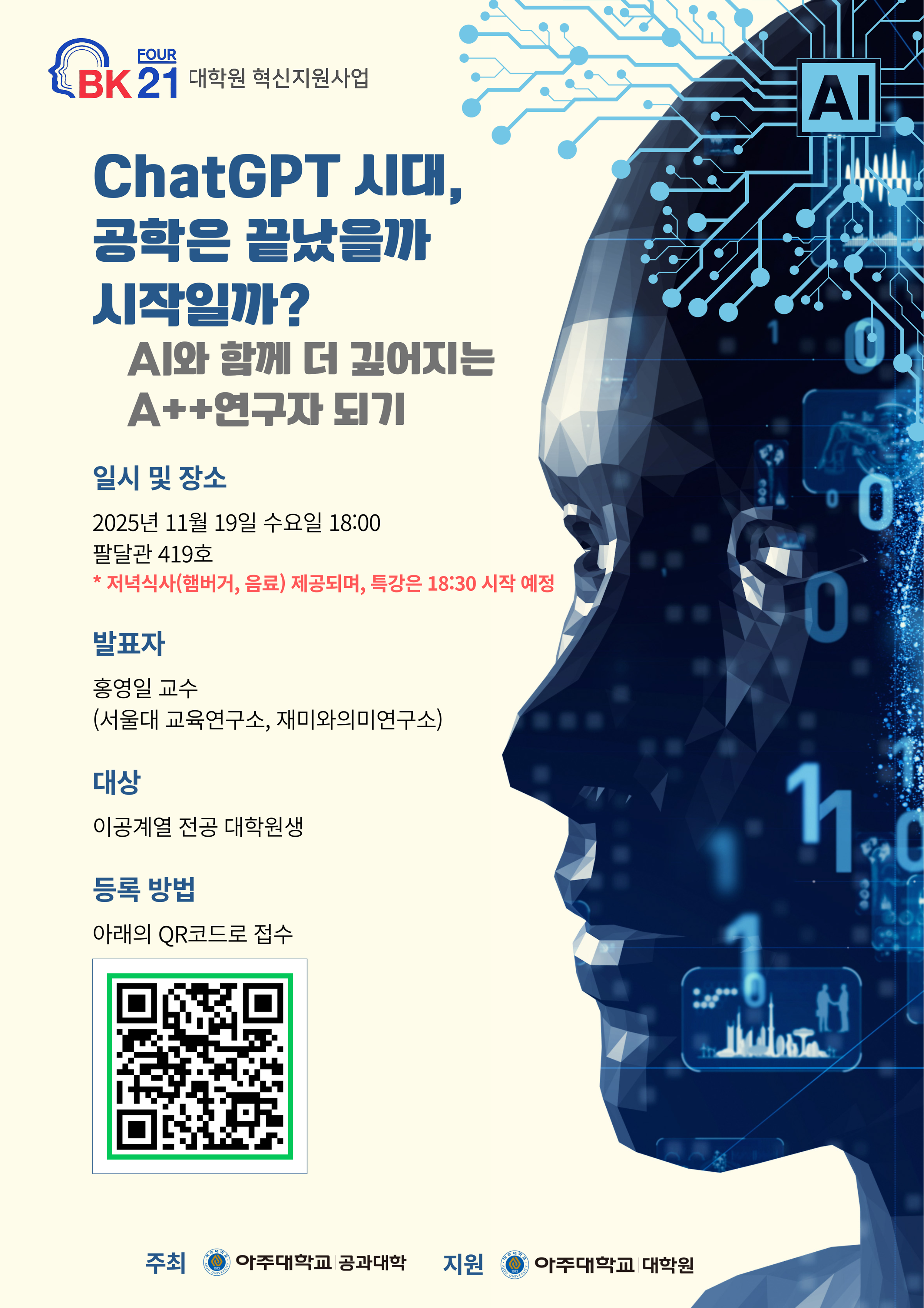 [기타] [공과대학] 이공계열 전공 대학원생 대상 AI 특강 안내 (11.19(수))
