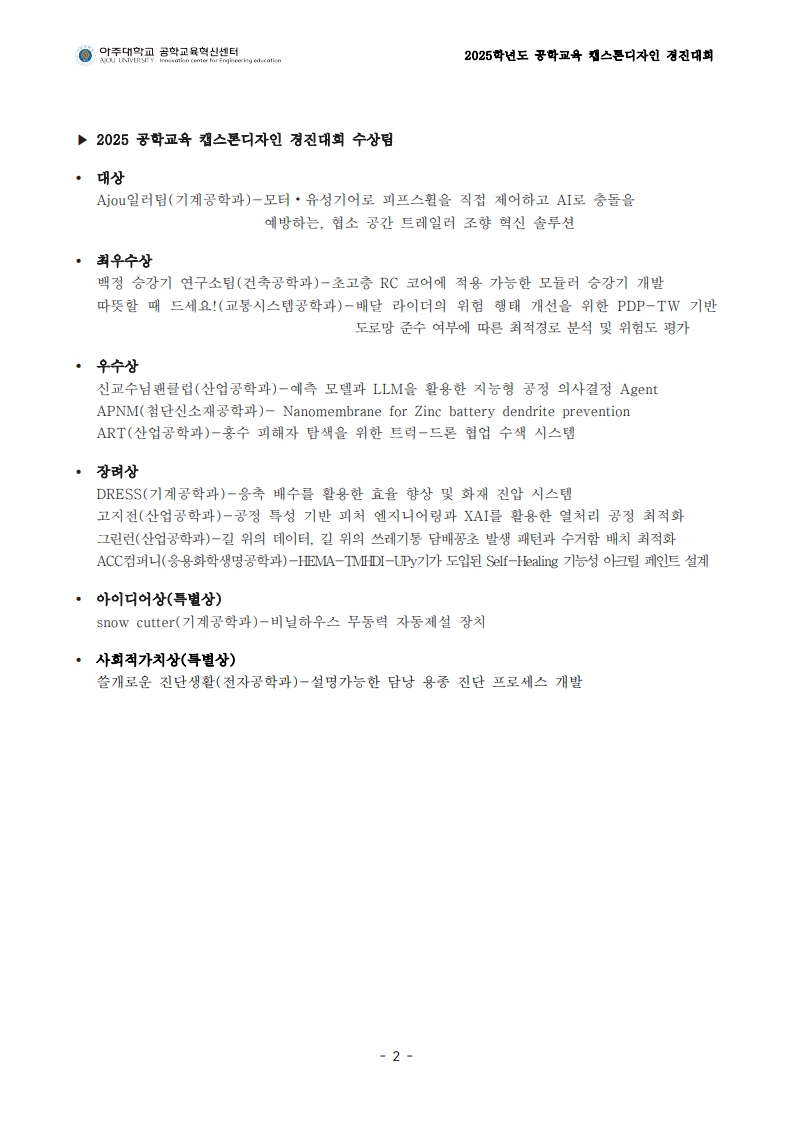 2025 공학교육 캡스톤디자인 경진대회 성료