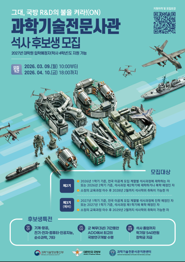 [기타] 2026 과학기술전문사관 석사 후보생 모집·선발 공고