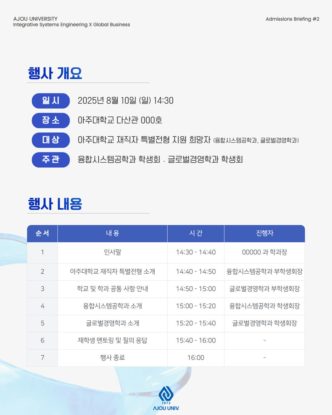 [행사] [공지] 2026학년도 아주대학교 재직자전형 입시설명회 개최 안내