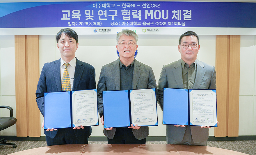 아주대학교 첨단ICT융합대학이 한국 NI·선인CNS와 업무협약(MOU)을 체결했다. 이번 협약을 기반으로 한국 NI는 41억1900만원 상당의 소프트웨어 구독 라이선스를 아주대에 기증했다.