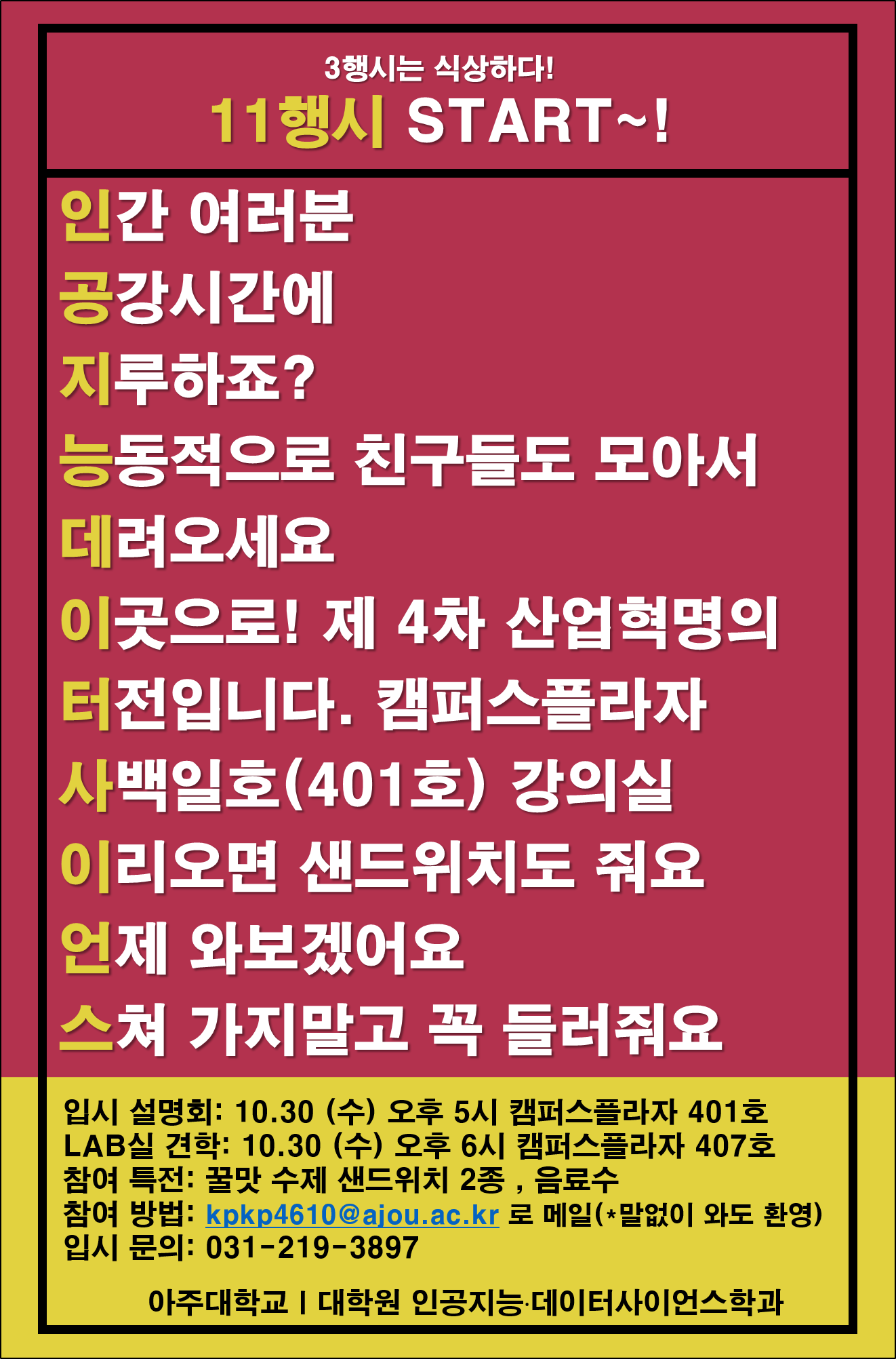 | 9038 | 입학 | 인공지능데이터사이언스학과 | 2019-10-24 | ||