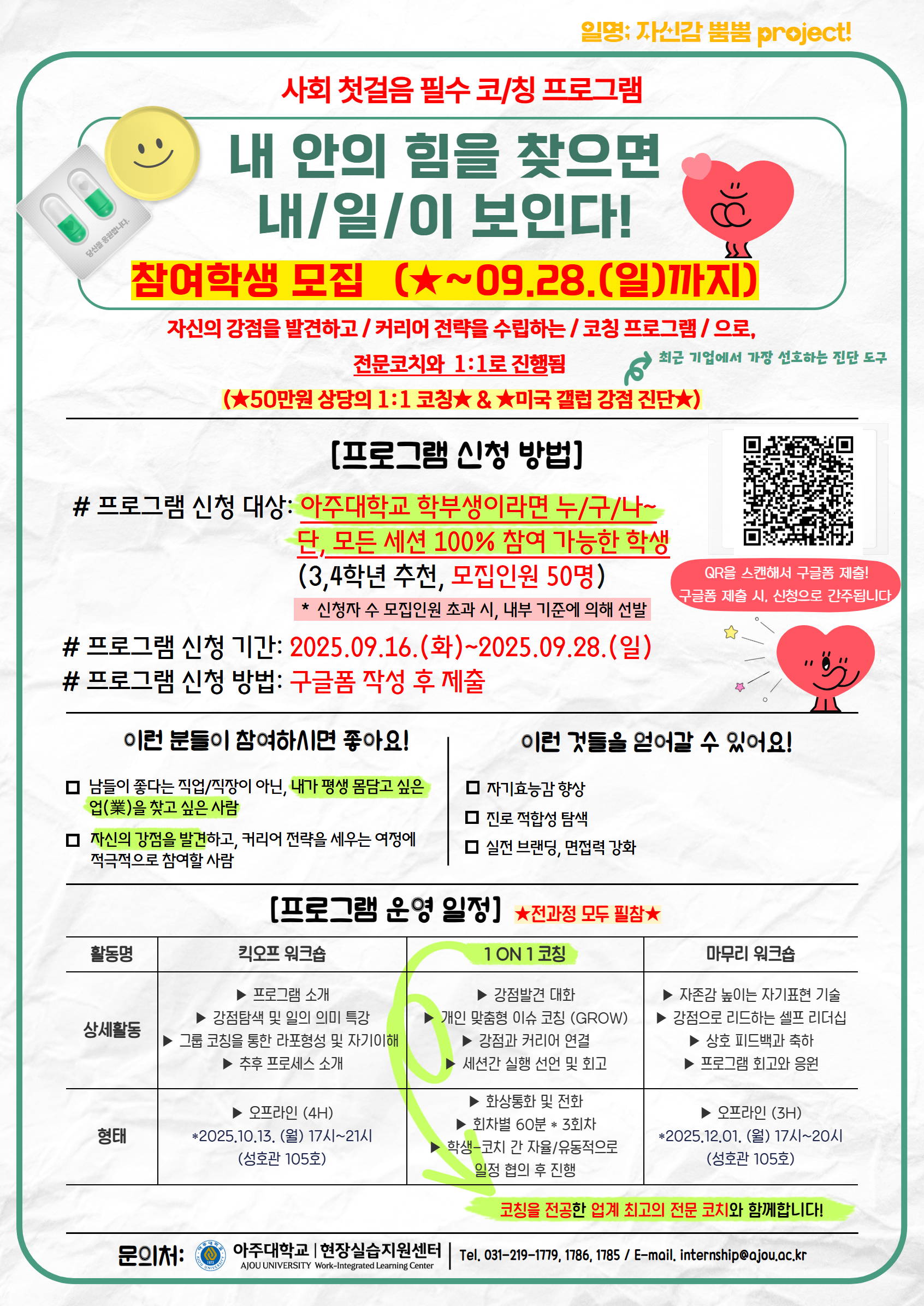💓"내 안의 힘을 찾으면 내/일/이 보인다!"💓사회 첫걸음 필수 코칭 프로그램 참여학생 모집 (★~09.28.(일)까지)