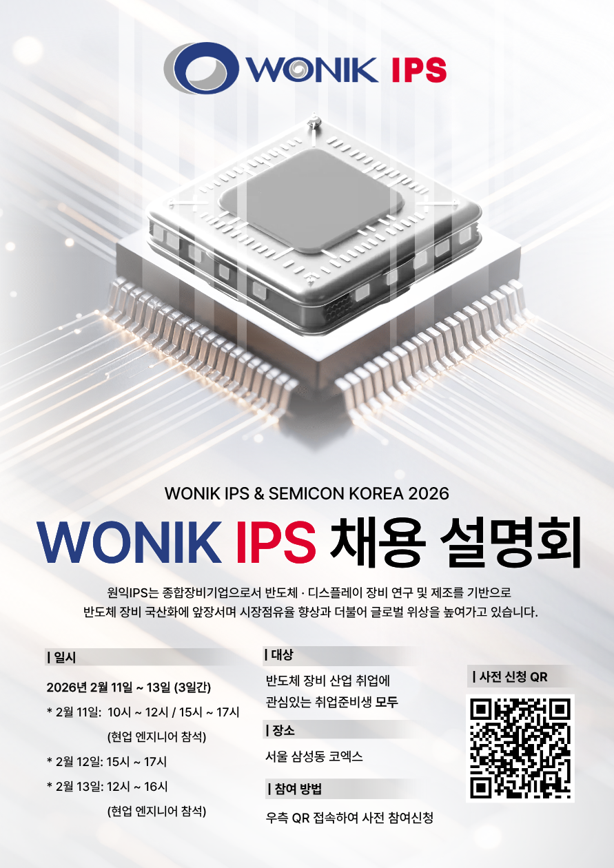 [일자리+센터] [반도체 전시회] 원익 IPS 세미콘 채용설명회 개최(2/11~13)_석박사 및 외국인유학생 포함