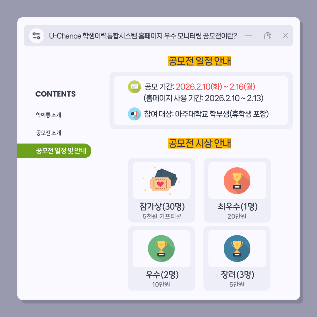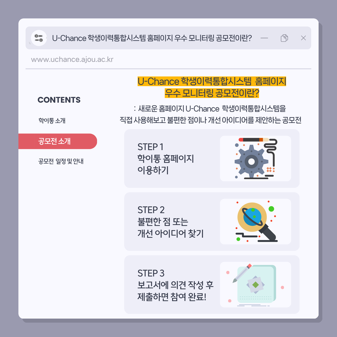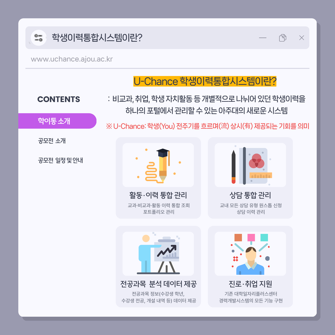 [비교과] [사전 안내] U-Chance 학생이력통합시스템 홈페이지 우수 모니터링 공모전📣💭✍️