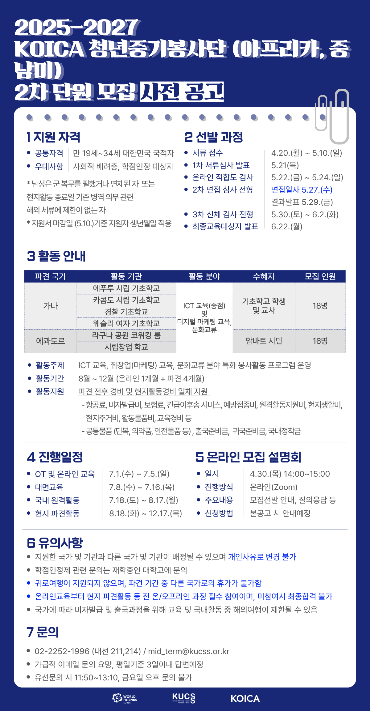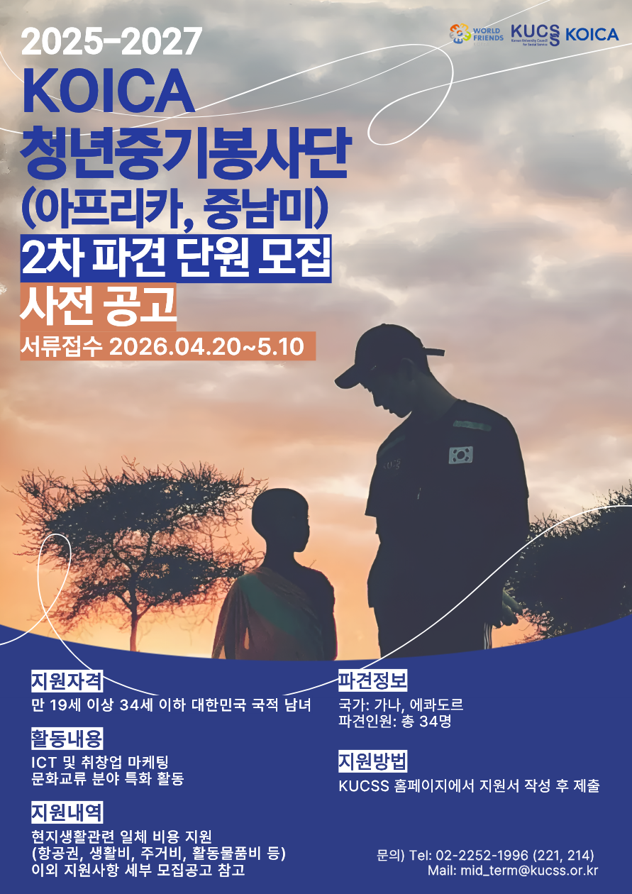 [비교과] [해외봉사](사전공고) KOICA-청년중기봉사단(아프리카,중남미) 2차 파견 단원 모집
