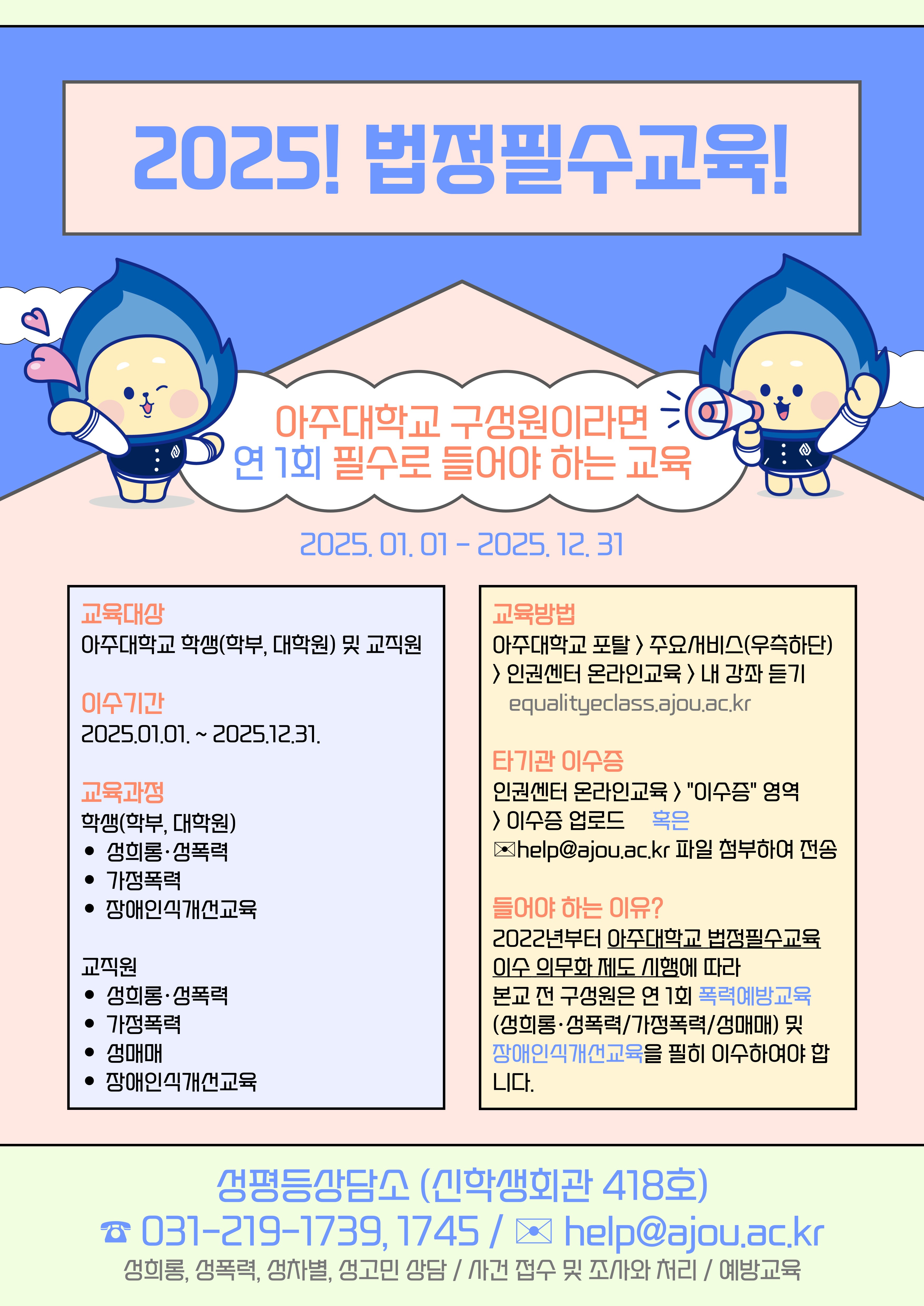 [성평등상담소] 2025-2학기 인권센터 법정필수교육 이수 독려 협조 요청