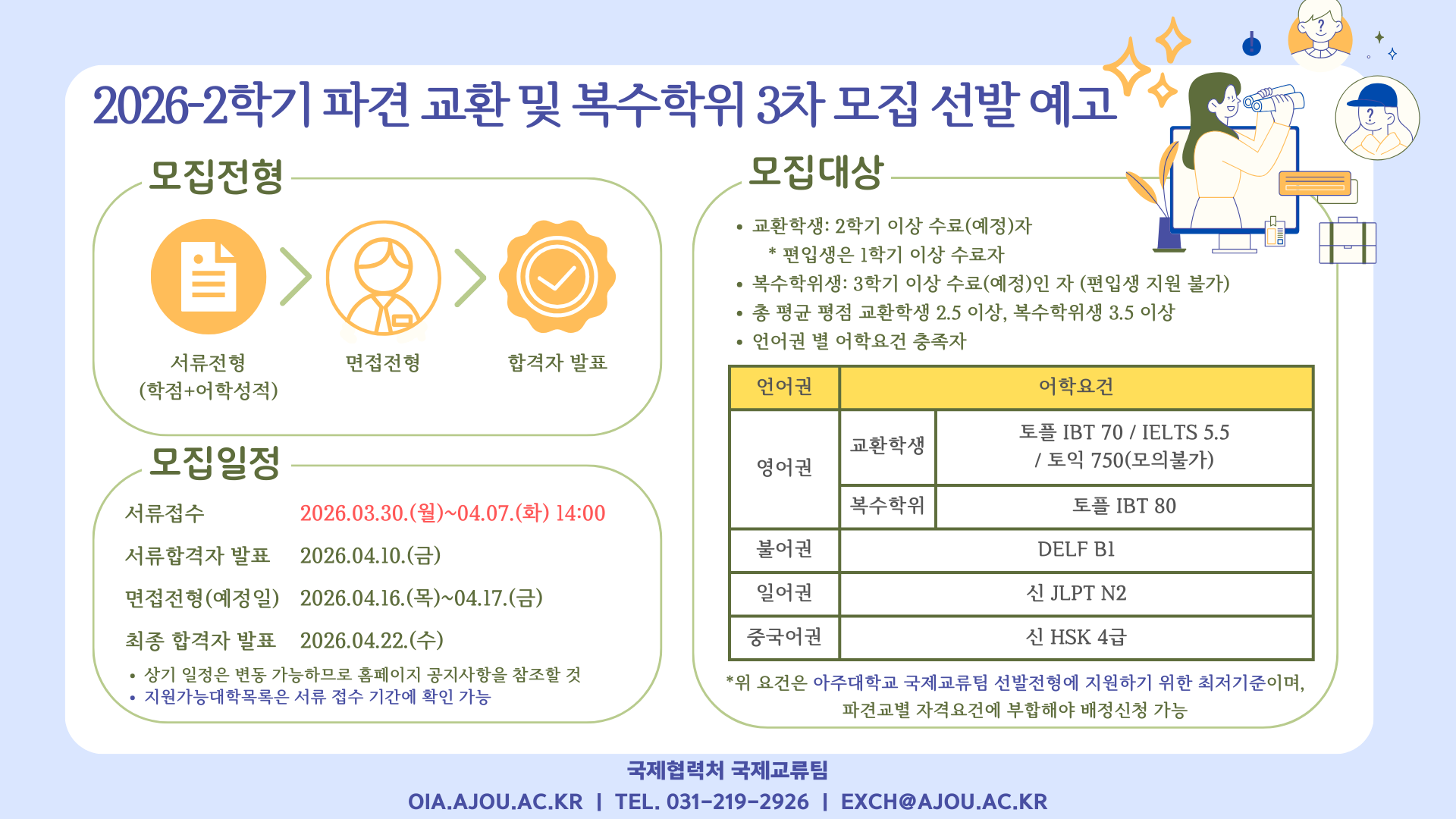 [공지] 2026-2학기 교환학생 및 복수학위 3차모집 예고